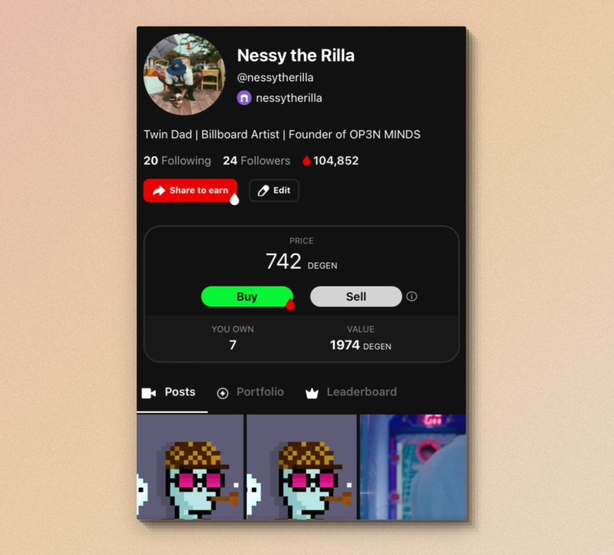 从某种角度来说,Farcaster上诞生的一种新资产发行方式,突破了传统SocialFi的概念。SocialFi中的Fi通常是为社交项目本身设计经济模型以激励创作者和使用者的参与度,以Friend tech为例即是通过将创作者本身代币化+内容代币化来为其创造收益。
