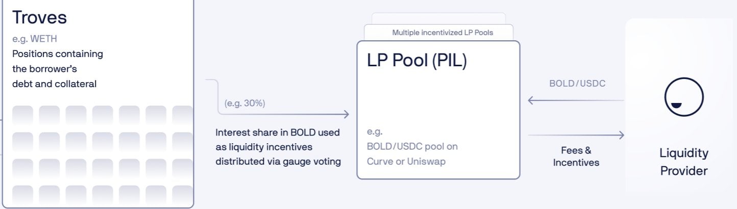 将部分利息收入分给DEX流动性提供者,目标使流通BOLD的10%提供AMM流动性。