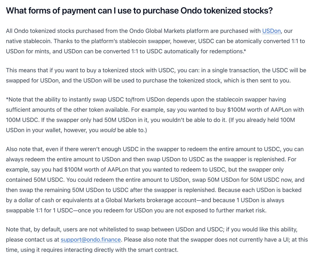 它用了一个非常聪明的方式就是自己mint一个稳定币USDon,然后在有购买需求的时候直接mint股票代币,用自己的USDon做桥,就不需要外界流动性了,因为股票代币和USDon都是它自己说了算,理论上可以"无限流动性"😂